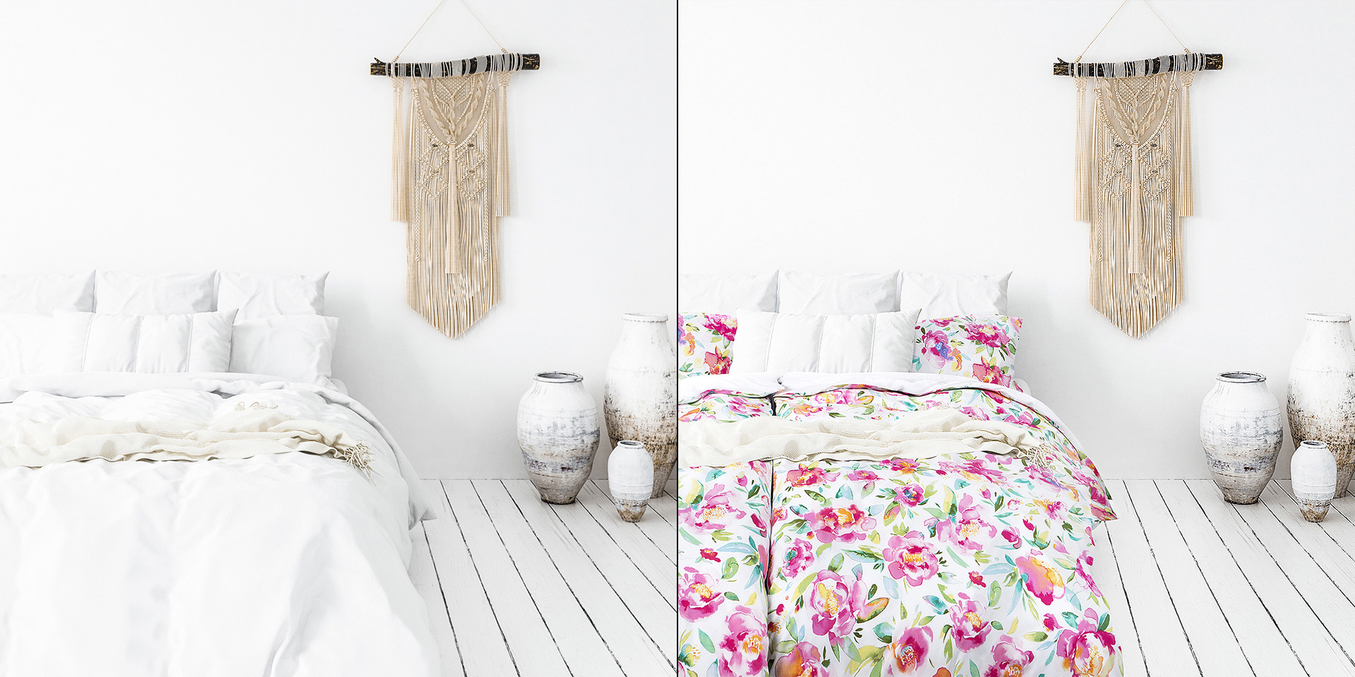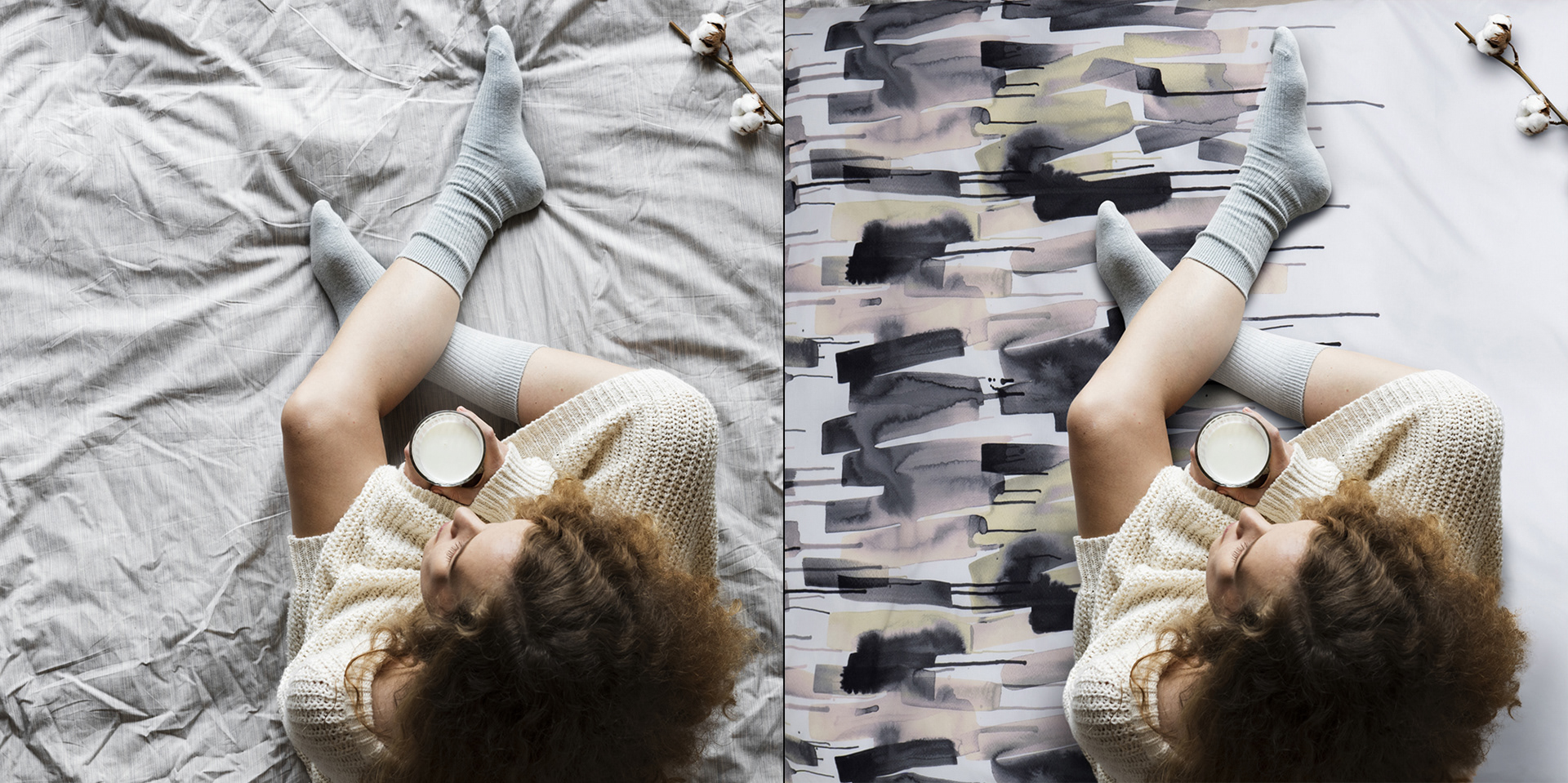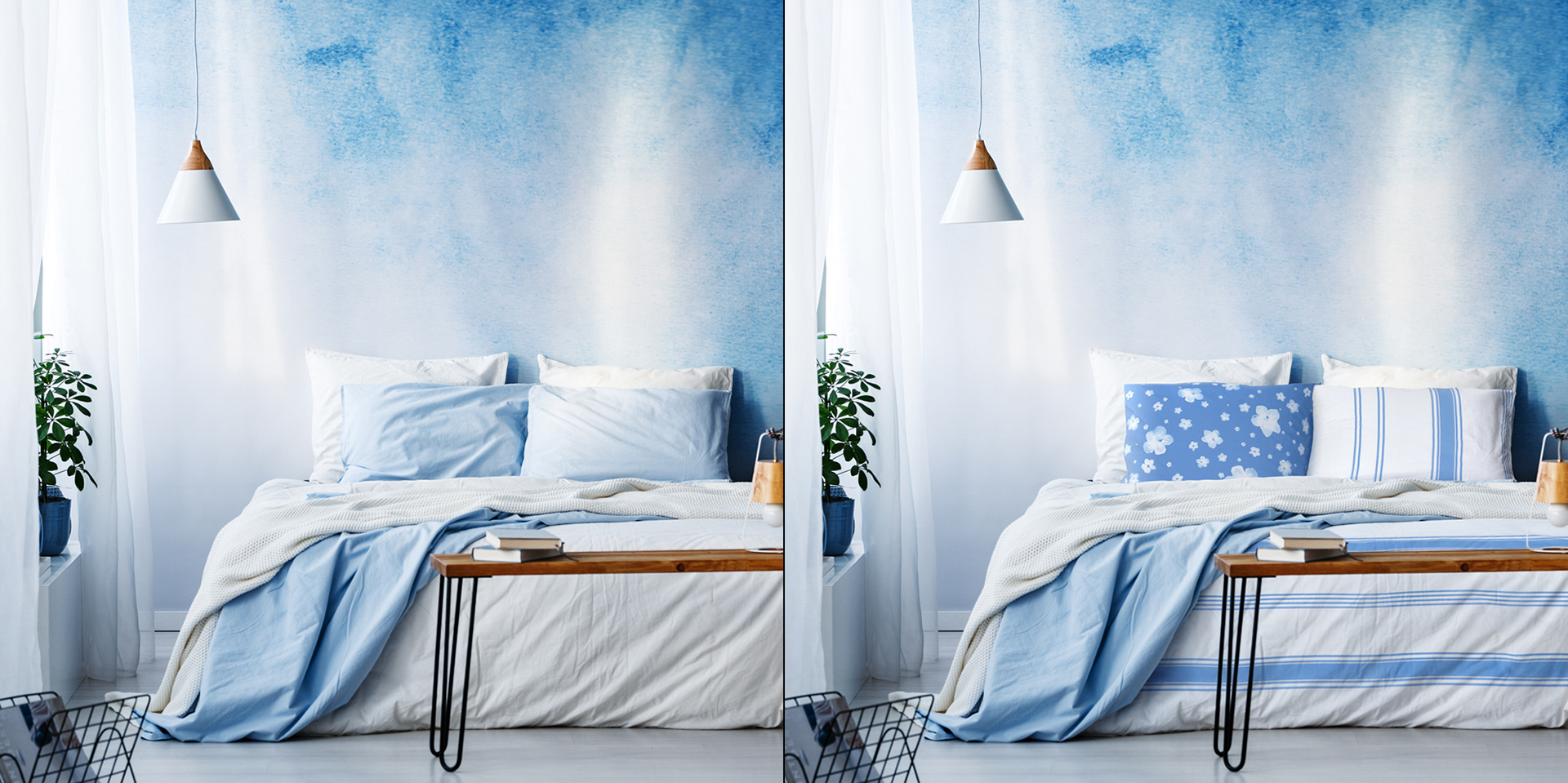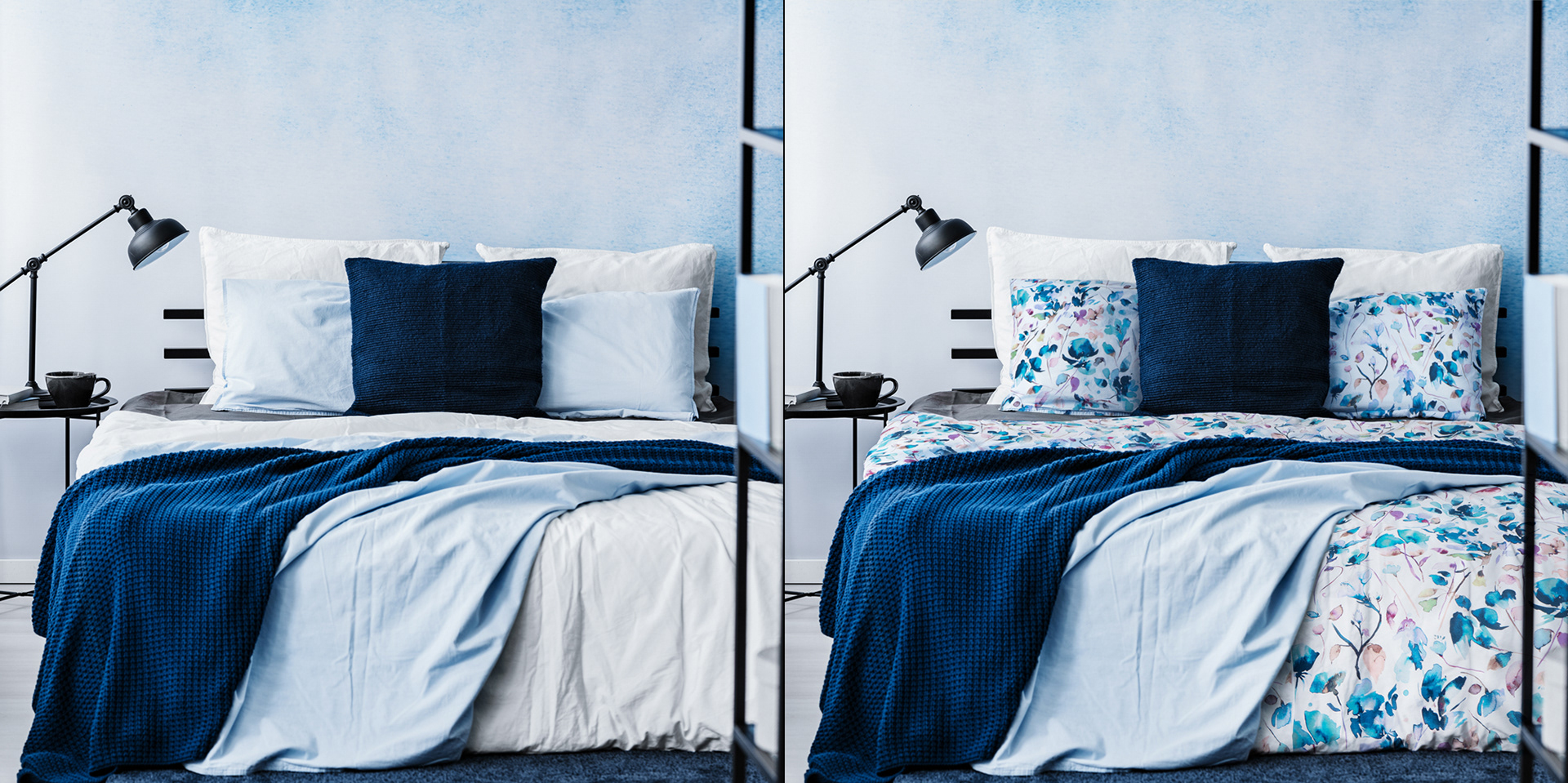 Inserting bed linen designs into bedroom photos, bedding photography