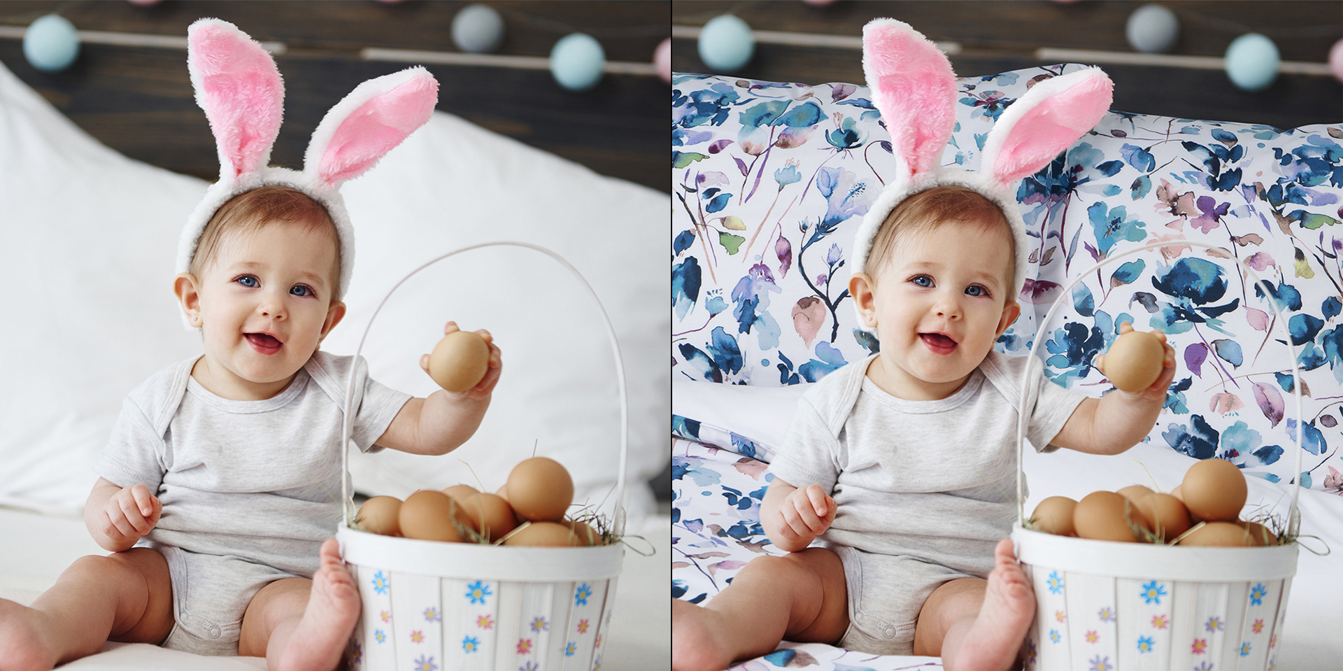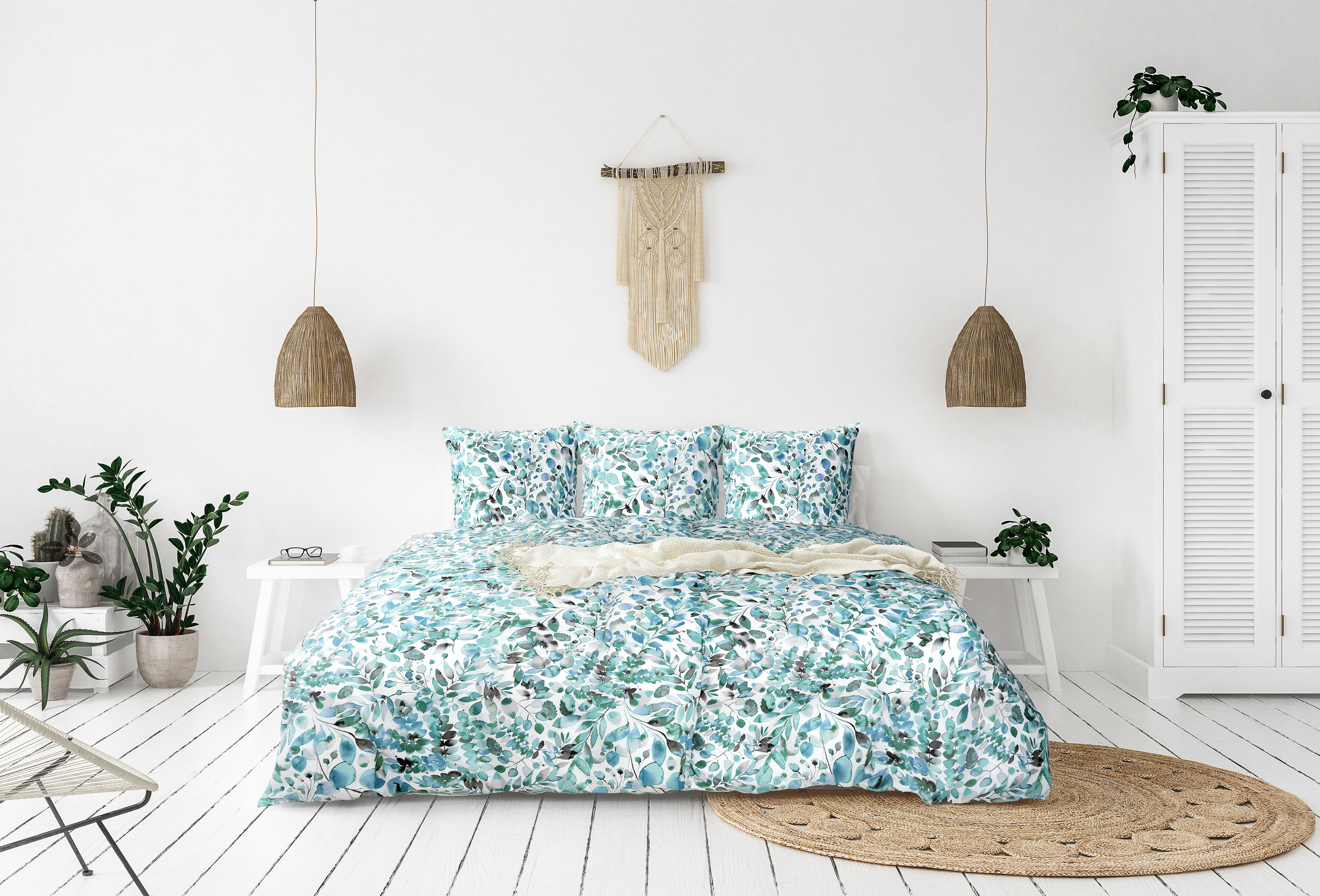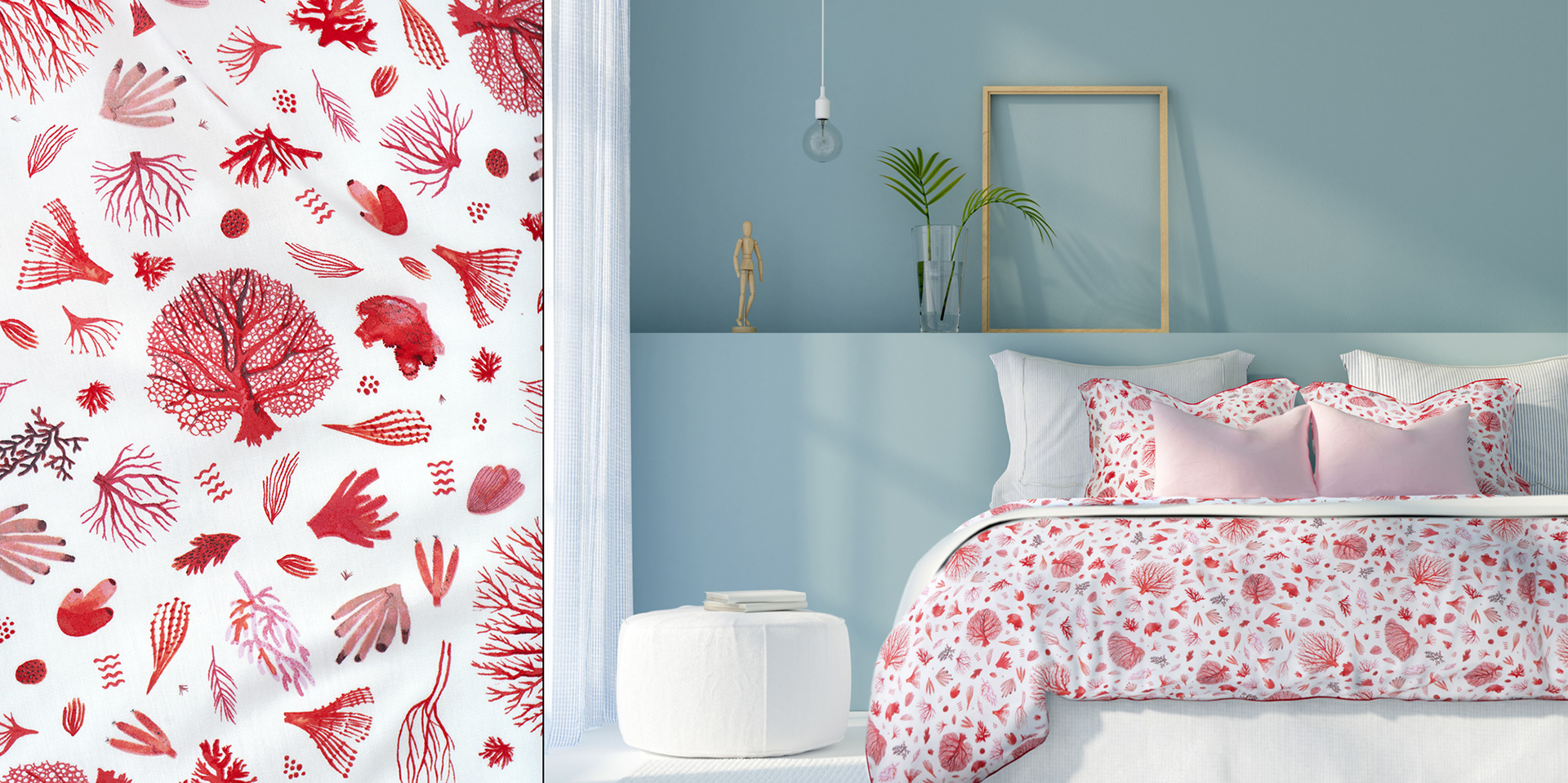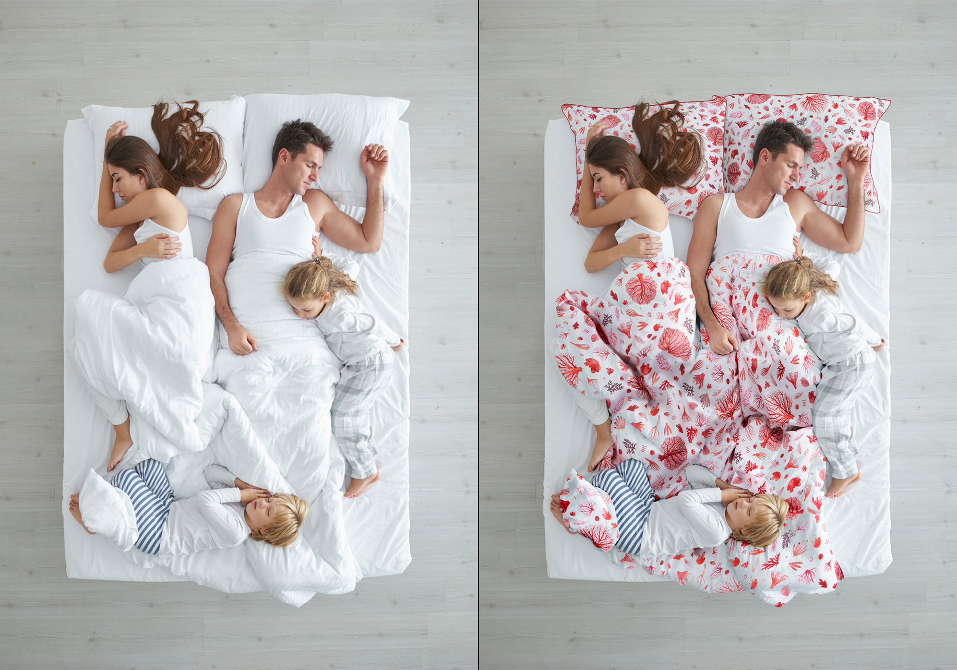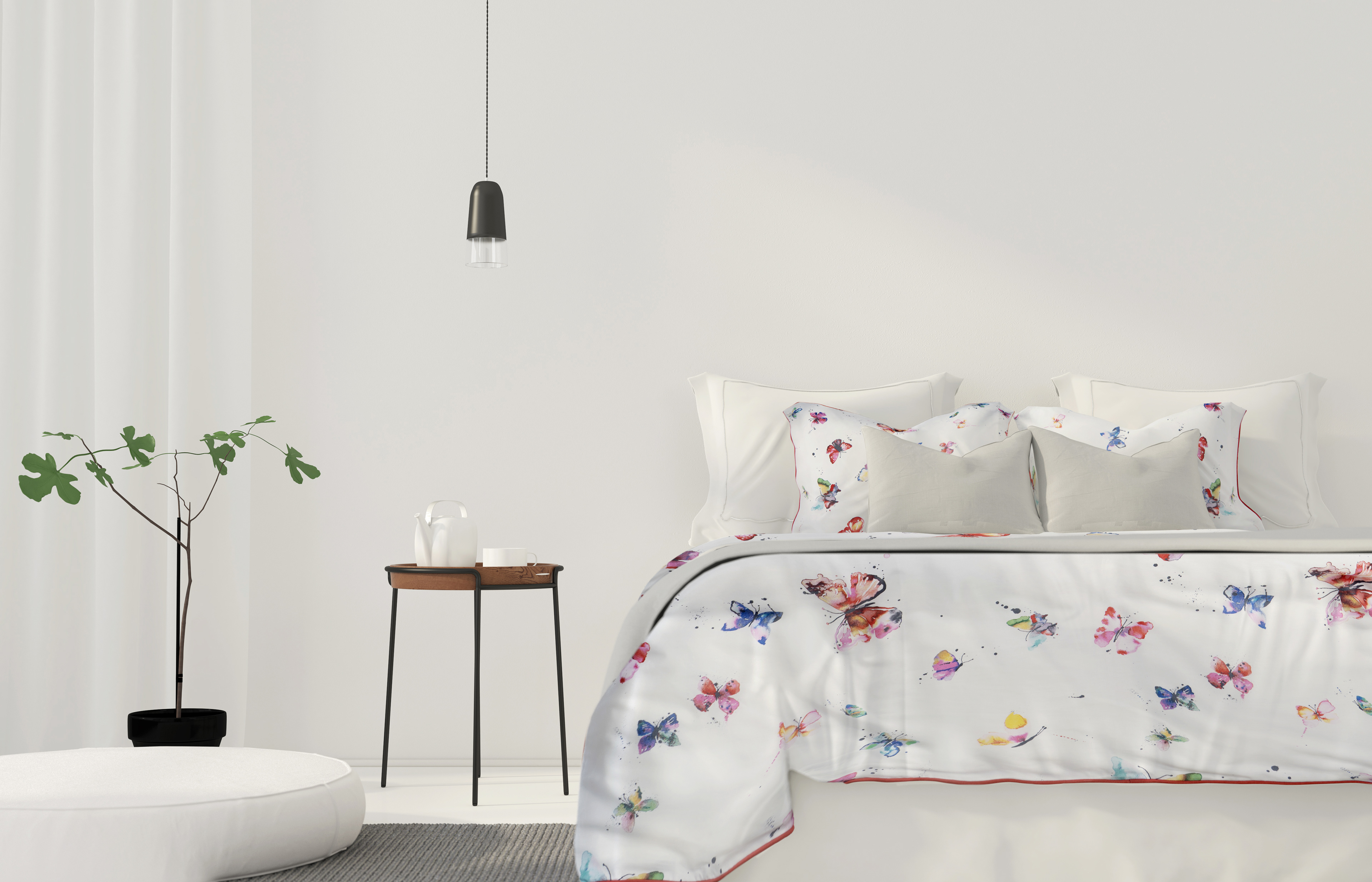 Inserting bed linen designs into bedroom photos, bedding photography